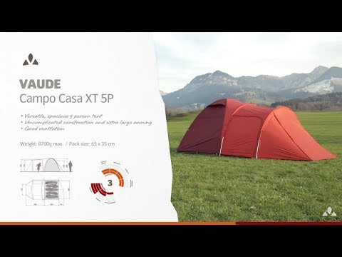 Thuis is waar je tent staat! Dankzij het hoge formaat van deze tent voelt hij ruim aan en hoef je de tent niet in te kruipen. De stahoogte varieert van 1,75 - tot 1,95 meter, waardoor bijna iedereen in deze tent kan staan. De voortent is voorzien van 3 grote ingangen, dus overdag kan de voortent fungeren als een lekker overdekt terras. De slaapcabine heeft een breedte van 2,80 meter. Dit maakt de tent het meest geschikt voor 3 tot 4 personen. Met 5 personen, zoals op de plattegrond, past wel maar dat is wel heel krap. Dat kun je ook zien. Dus wil je lekker comfortabel kamperen, dan adviseren we deze tent voor maximaal 3 tot 4 personen. Met een gewicht van 8,7 kg is de tent wel minder geschikt om mee rond te trekken of the backpacken. Is een ruime voortent voor jou een overbodige luxe? Neem dan eens een kijkje bij de Campo Grande XT.