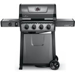 Deze Napoleon Freestyle 425 SB barbecue is het instapmodel van Napoleon. Met afmetingen van 64 bij 132 cm, een hoogte van 116 cm en vier RVS branders is het een compacte gasbarbecue die geschikt is voor nagenoeg iedere tuin. En met een warmteopbrengst van 16,6 kW en grilloppervlak van 60 bij 46 cm heb je toch genoeg ruimte en vermogen om voor al je vrienden of familie tegelijk te grillen! De kuip is gemaakt uit één deel gegoten aluminium waardoor je verzekerd bent van een supergoede kwaliteit. Weten of de Napoleon Freestyle 425 SB op temperatuur is? De thermometer op de deksel is je beste vriend!