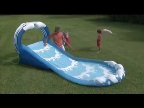 Creëer je eigen waterpark in de tuin met de Intex Surf 'N Slide opblaasbare waterglijbaan. Garant voor urenlang speelsplezier voor jong en oud. Komt inclusief twee opblaasbare surfboards voor extra veel waterpret. Dankzij een gemakkelijke voorgemonteerde aansluiting sluit je met gemak een tuinslang aan. Hiermee wordt de Intex Surf 'N Slide opblaasbare waterglijbaan automatisch van water voorzien om extra hard naar beneden te glijden. Vervolgens landt je op een speciale landingszone die is voorzien van een zachte afwerking voor een veilige en zachte landing.